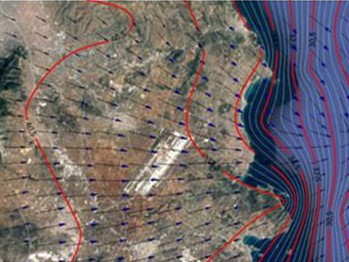 AIR TEMPERATURE & WIND VECTORS ON THE GROUND AT THE ATHENS INTERNATIONAL AIRPORT (CLIMATIC SCENARIO 2040)